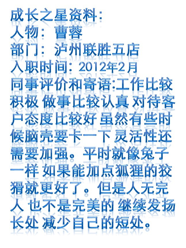 瀘州聯(lián)勝2012年7月成長之星曹蓉